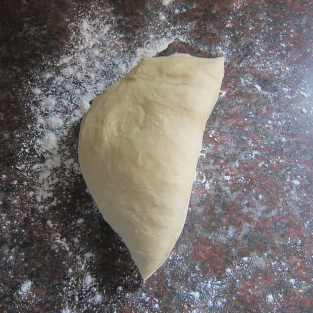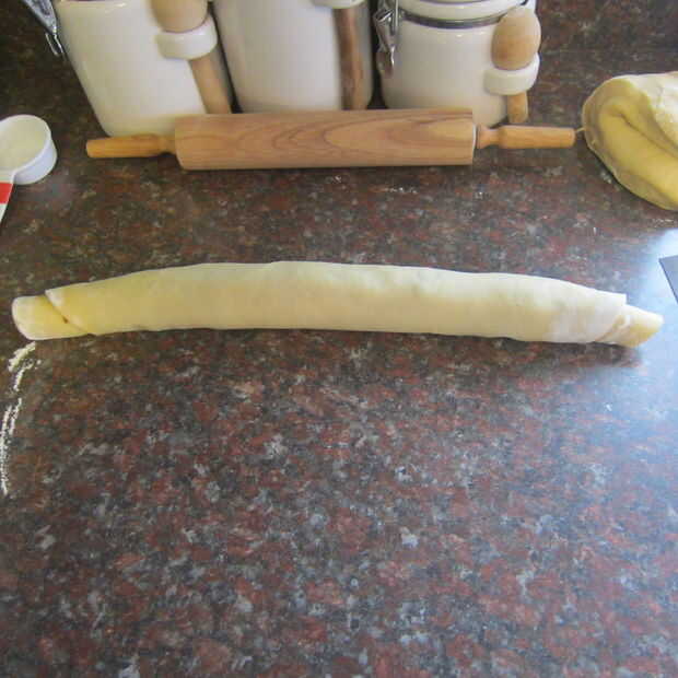 Usando un rodillo rodillo una mitad de la masa en un rectángulo de aproximadamente de 1/4 pulgada de espesor.