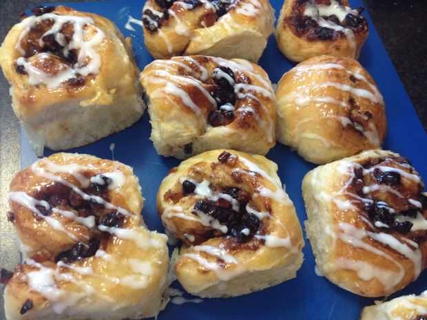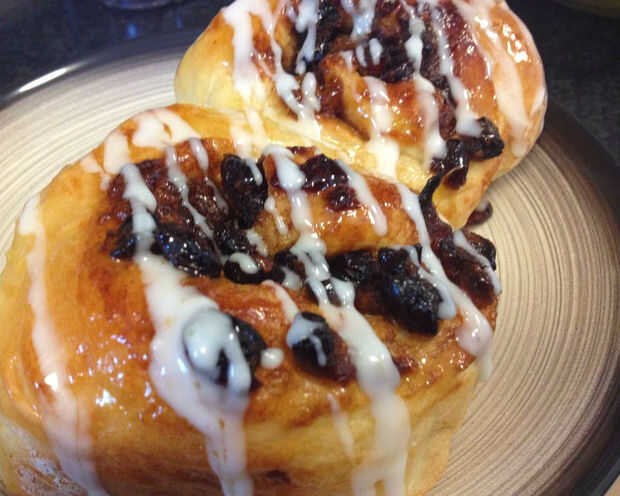 estos bollos pegajosos son una reminiscencias de los que usted puede comprar de la gente Amish en cópula, Pennsylvania. Estos bollos se sirven mejor caliente del horno. Son dulces por su propia cuenta, pero si necesita ese impulso de azúcar extra, us