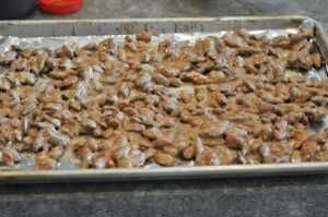 Extender las almendras en una capa uniforme y pop en un horno 250 grados.