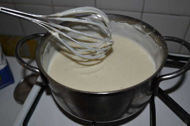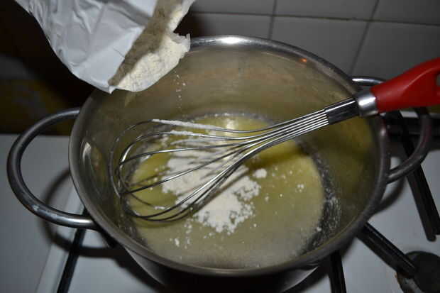 -derrite la mantequilla sobre un fuego lento (no le permitió convertirse en marrón); -agregar la harina mientras revuelve continuamente; -agregar la leche mientras revuelve continuamente; -Cocine a fuego lento hasta que la besciamella espesarse; -Añadir sal y nuez moscada (me gusta mucho de él).