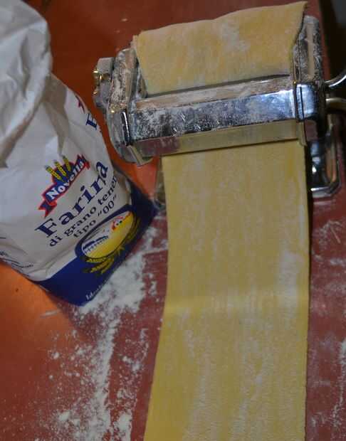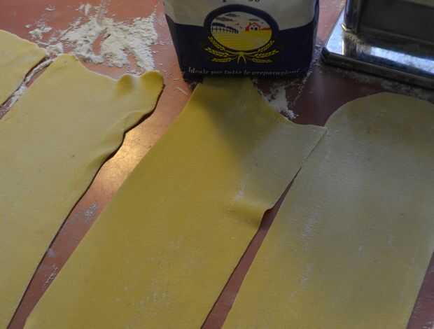 -hacer los tallarines como lasagnas en la pasta de la máquina y cortar en segmentos de 25 / 30cm (comienzo a hacer fideos más gruesos, que el thiner, hasta que en la thinest de la regulación de la máquina de pasta. Doble por la mitad los fideos hace cada vez y pasar dos veces por cada regulación. Doblar los bordes de fideos cuando no recto);