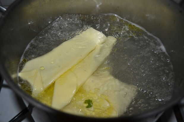 -cocer los tallarines en agua hirviendo durante medio minuto o un minuto (tres de una vez);