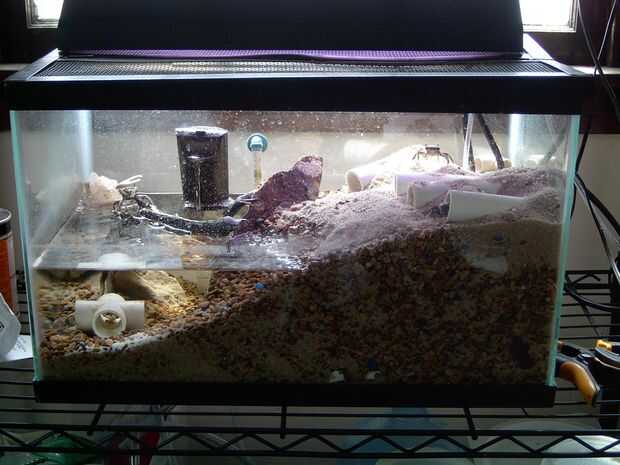 -Arena (patas de cangrejo del Fiddler están diseñados para arrastrarse sobre la arena, no van para la grava ya que hace que sea difícil para ellos a gatear en aunque no lo creas cangrejos violinistas va a morir de frustración)