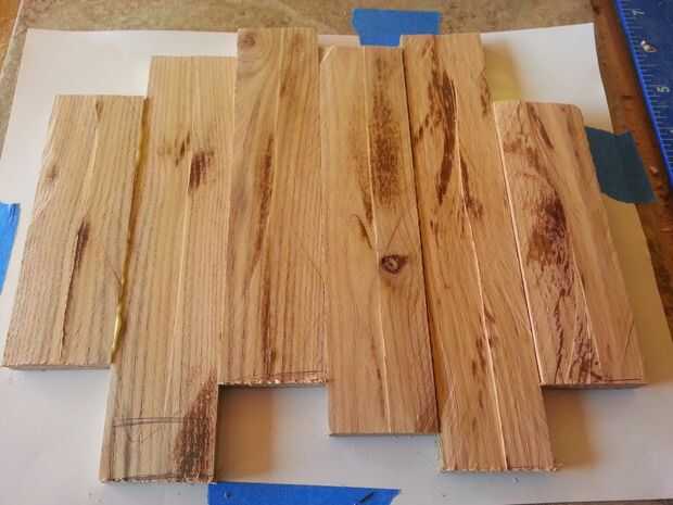 usando el Titebond pegué mis piezas juntas para crear una 'hoja' de madera, se seca durante una semana (por el tiempo y no poder volver a entrar a la tienda) Asegúrese de seguir las instrucciones de la cola que selecciona utilizar