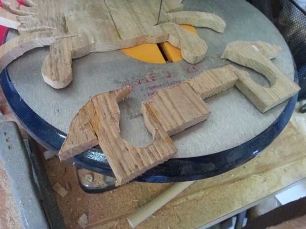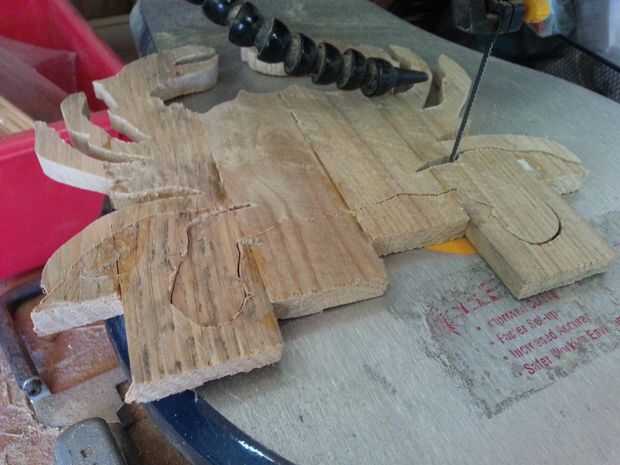 Con mi sierra de contornear recortar la forma del cangrejo siguiendo el esquema de carbono