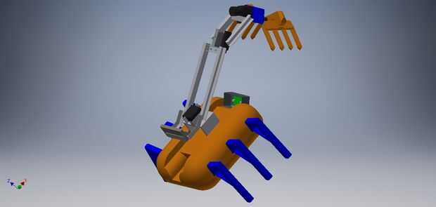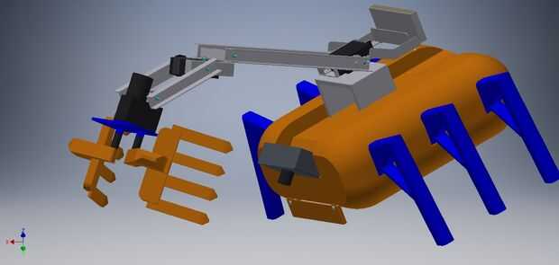 El chasis del robot serán toma de un juguete robot comercial. Este juguete tiene 6 patas y puede moverse adelante, atrás, girar a la derecho, gire a la izquierda y es controlado de radio. Se realizará una adaptación, con el mecanismo del robot para pasear y se añadirá cierto nivel básico de la inteligencia mediante un microcontrolador, sensores, motores y una cámara.