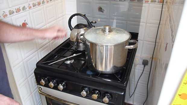 Calentar una olla grande / pan de agua a ebullición, dejando suficiente espacio para que no se desborde al colocar el cangrejo en él.