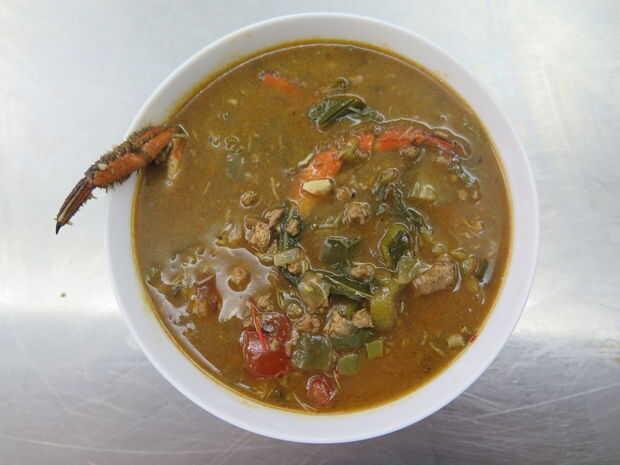 Si tienes cinco rojo cangrejo de roca y aún un montón de gente que quiere comer, un pleaser de la muchedumbre a cangrejo gumbo. Principios de la temporada matado un cerdo entero, tenía salchichas, stock e izquierda de que para usar en el gumbo de manteca de cerdo. Los cangrejos de roca fueron capturados en macetas empapadas de 9 Pier en San Francisco. Puedes ver cómo coger a tus propio cangrejos aquí.