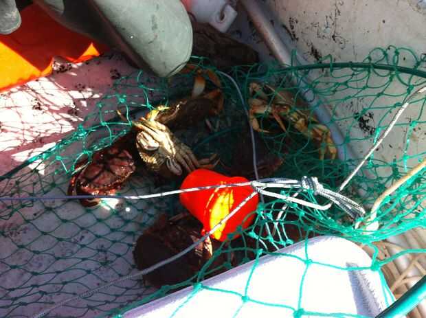 Crustáceos son deslizándose a través del fondo de la bahía de San Francisco, muda, apareamiento, escondidos en la hierba de la anguila y comer peces pequeños y moluscos antes de salir de la bahía a aguas más profundas. Dungeness son un favorito de ga