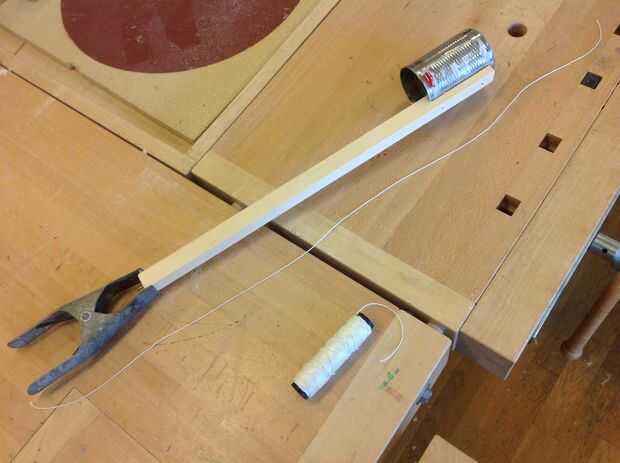 Cortar la cadena un poco más larga que el palo. Atar una arandela en el extremo de la cuerda. La cadena de arrastre y atan tan firmemente como sea posible alrededor de la uña.