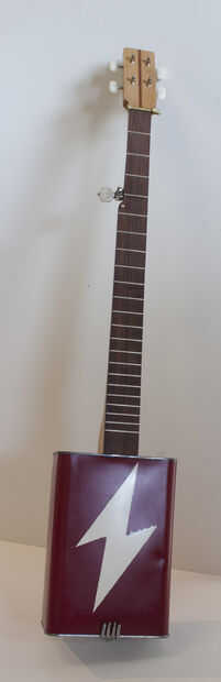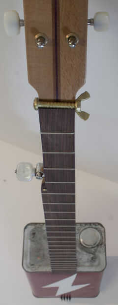 Se trata de un Canjo. Parte puede, parte Banjo. Yo lo llamo "Thunderstruck". Lo hice el invierno pasado en la petición de un amigo importante. Me olvidé de fotografiar el canjo en progreso, sin embargo voy a hacer algunas fotos de la recreación este instructable (debo hacer una nueva pero tengo muchos otros proyectos sobre la mesa.). Este es mi primer instructable y mi primer instrumento.
