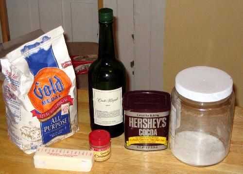 Los ingredientes: 2 c harina 1/4 de cucharadita de canela 1 cucharadita Azúcar 1 cucharada sopera sin azúcar cacao 2 cdas mantequilla algunos Marsala vino blanco, 1 huevo ligeramente batida (no foto) OK, si alguna vez has hecho masa, es casi idéntico. La única diferencia real es la mantequilla y en lugar de una base de huevo o agua, es una base de vino. Yo, me gusta las cosas buenas. Fui a mi tienda de licores locales y buscó la más cara botella de vino de Marsala, que podía bien. Yo no soy Moneybags Sr., pero no escatima en calidad, por lo que bombardearon a necesario $13. El huevo es para el sellado de la masa alrededor del molde, así que no la usamos para un poco mientras todavía.