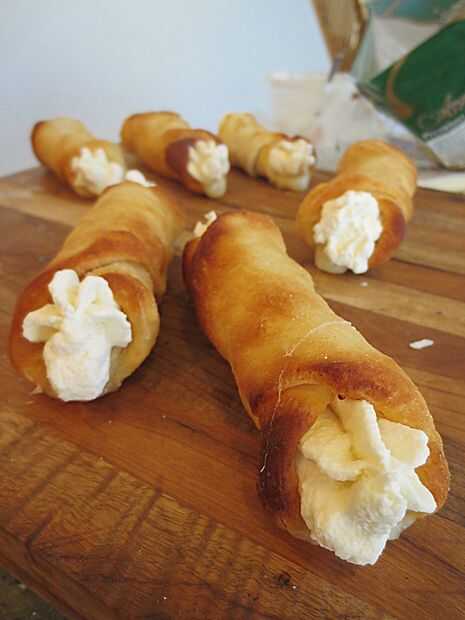 Después de cannoli se han enfriado un poco, una cucharada de ricotta crema en ambos extremos de cada cannoli y espolvoree con pistachos triturados de la pipa.