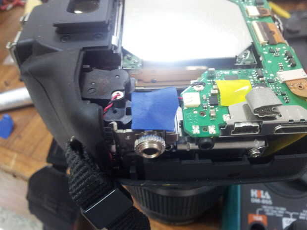 La contraportada tiene un escudo de metal en su interior por lo que he añadido un pequeño trozo de cinta aislante para que no cortocircuito en los contactos del jack.