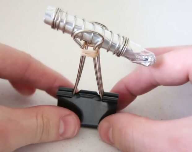 • Ahora toma el cilindro del cañón y deslizarse entre las 2 patas del clip.