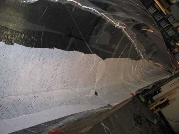 La mitad del casco se hace y ya encontré la rigidez de la estructura. Hacer el lijado de la fibra