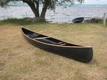 Los bancos no están instalados, trajo todo el equipo que necesario. La canoa en el agua y un