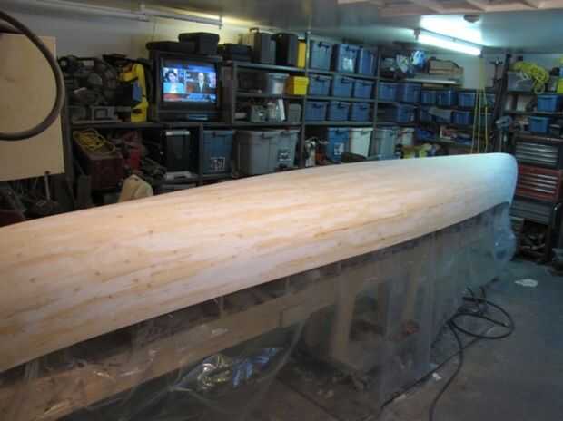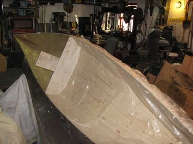 Tomé la canoa de sus estaciones y haga un lijado breve desde dentro del casco que eran pequeñas ráfagas de tiras que podrían perforar la bolsa.