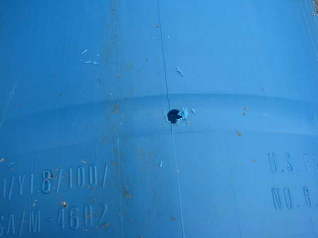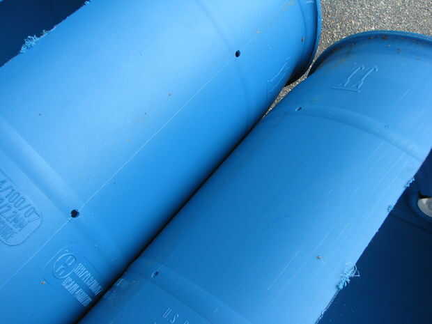 Las líneas uno los barriles funcionaron la longitud de los lados, que es bonita. También hay un anillo levantado alrededor del cañón. Estos hacen de excelentes marcadores para taladrar los agujeros correspondientes. 'X' marca el deporte, así que perforar dos veces por cada barril. Limpie los orificios con un cuchillo.