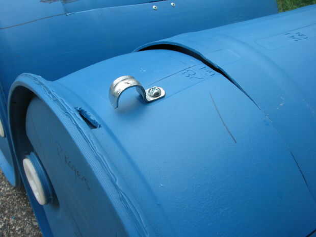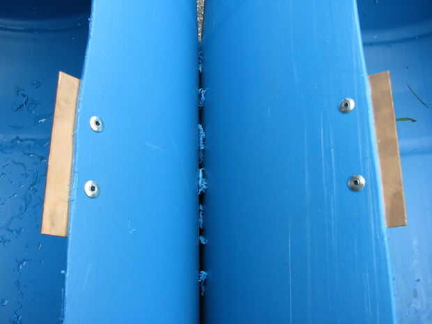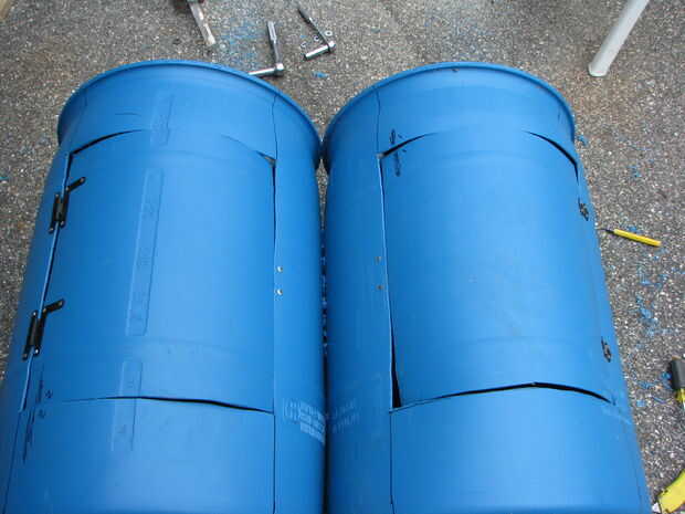 Corte, perforado, perforado y presentó una sola pieza de chatarra en dos, que cada uno creará un borde para detener las puertas de ir dentro de los barriles. Marcar y perforar el cañón y clavar la pieza dentro.