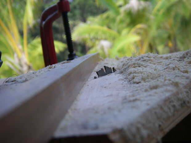 Tallados los surcos, hecho un montón de aserrín, no cortar los dedos y estaba alegre por hacer.