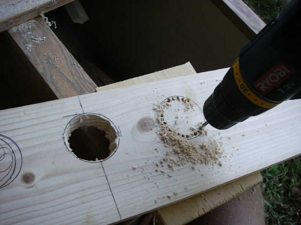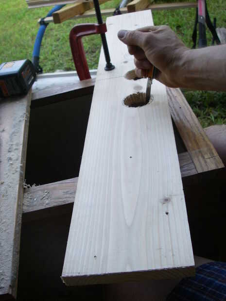 Pongo mis pasos de mástil en el borde interior de la cubierta, en lugar de en el casco como es tradicional. El cordón de piel estaba en el camino. He perforado círculos de agujeros con una broca pequeña y luego redujo los zócalos lisos con una navaja leatherman de instructables.