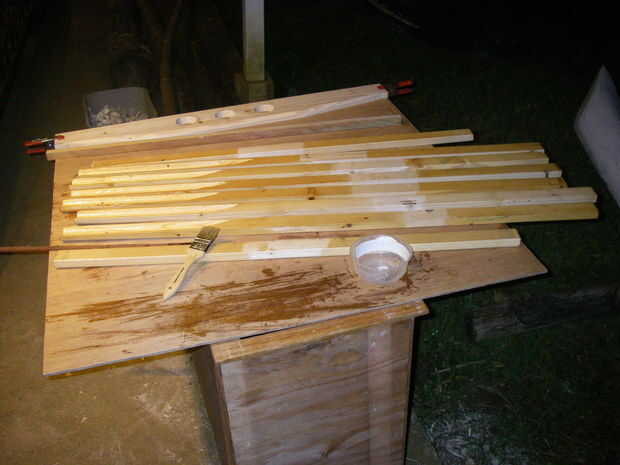 azotando los largueros a los tallos. Bloqueo de las trincas con epoxi. Acabado del marco con aceite de linaza.Aquí es lo que terminamos con este capítulo. Un marco de casco sobre todo terminado con una capa de aceite de linaza, un montón de cintas ac
