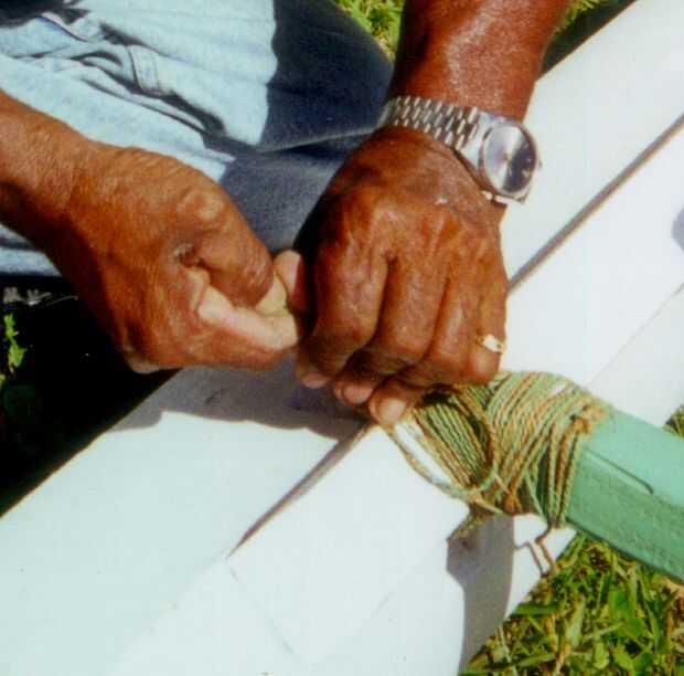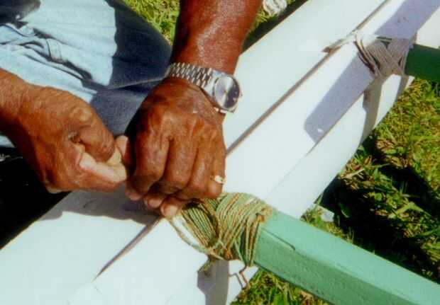 La cadena es sennit de coco, torcido de las fibras de la cáscara de un coco.