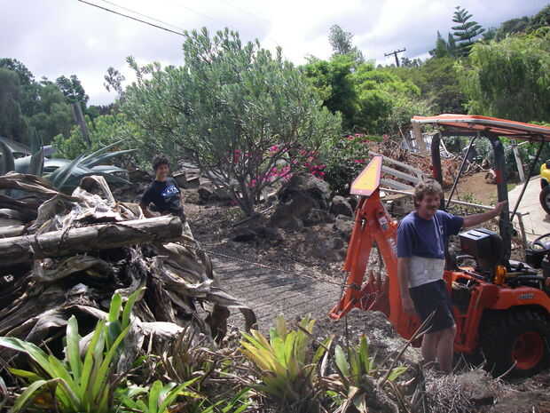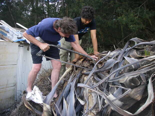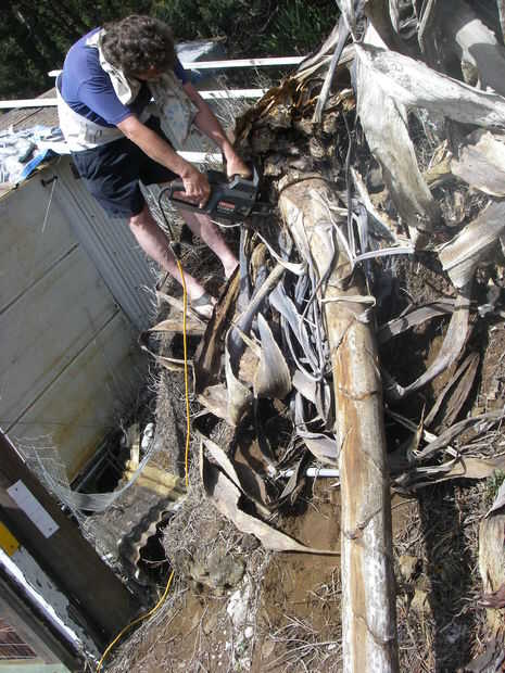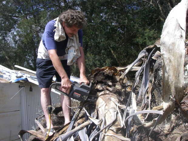 Hojas de agave tienen afiladas espinas en sus bordes. Una maraña densa de estas cosas es un lugar difícil para trabajar. Trabajaba lejos y consiguió un montón de troncos de agave de las generaciones anteriores de las plantas. Nos dijo que nos ayudan a bambú y tunas mientras estábamos en ello. Así lo hicimos.