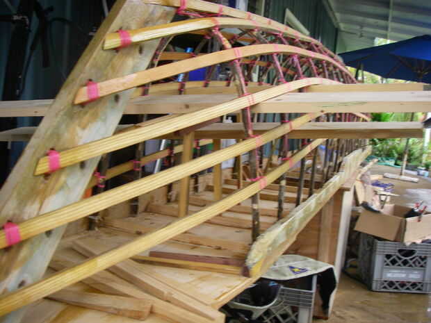 Las varas para empujar bombeado la cubierta un poco, que es bueno. Una "cubierta coronada" vierta el agua y el arco es mucho más fuerte.