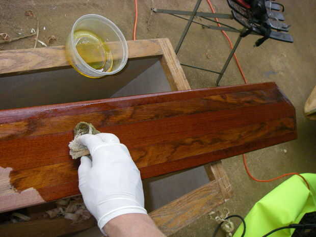 Limpiar una pieza de madera con agua (o dedo mojado de saliva) de qué color sería cuando usted barniz. Unas gotas de agua y gotas de sudor tenían me mostró que esta madera se ven muy bien.