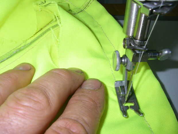 Coser el dobladillo de la borda. Al llegar a la parte, meter en el dobladillo de un pie o tan separados los dos agujeros.