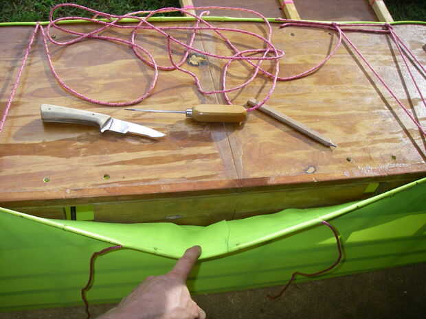 Vamos a tener que cortar agujeros en la piel allí. Asegúrese de que el cordón extiende a estos orificios, o va arrancar de una manera horrible.