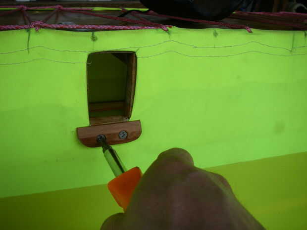 Hay un montón de trucos para este proceso, algunas herramientas nuevas y unos cuantos rotos. Estructuralmente, la piel de esta canoa es muy importante. La tensión es llevada por la piel y la compresión por el marco. Resultó muy bien.Cosí la piel de"L