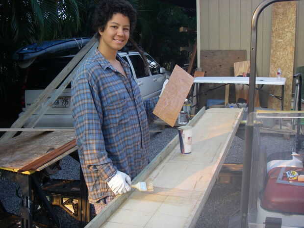 la canoa navega gran! Lo pongo en el océano en Kalama Park en Kihei, Maui, por Club de la canoa de Wailea. La canoa es ligero, rápido y fácil de dirigir. Aquí está mi informe sobre lo vela.Voy a publicar los capítulos restantes de la construcción de
