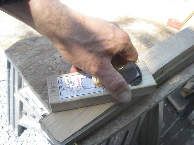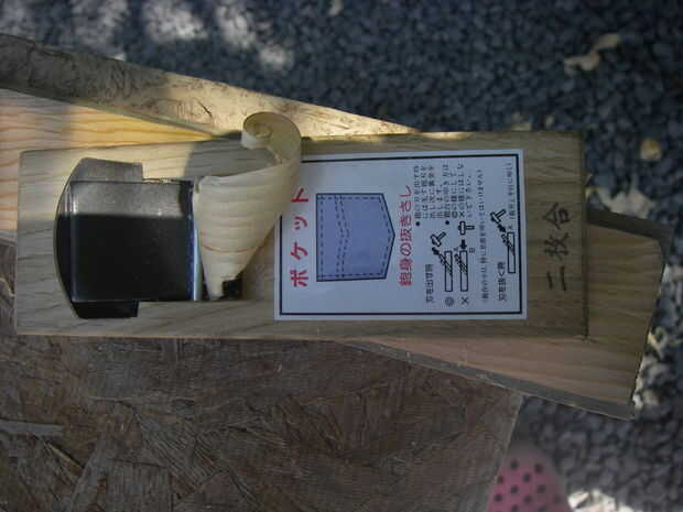 Luego limpió para arriba con mi pequeño avión de madera. Lo conseguí en Japón para $10 o menos en un supermercado "Casa Cainz". Herramientas de alta calidad son realmente baratas en Japón. Este vino con una etiqueta que muestra cómo ajustar la hoja y mantener el avión en el bolsillo de la camisa.