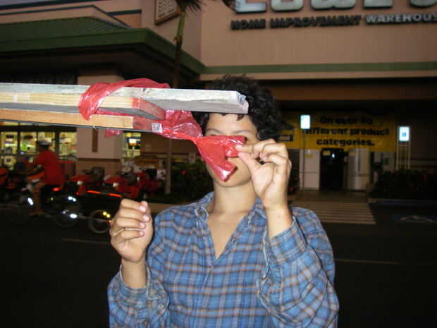 remo del manejo para un autóctono carreras de canoa. Esto es una copia de un remo de Morton Jikit de Namorik Atolón. Ganó la regata Nacional de las Islas Marshall en el año 2000 con él.Es 104" de largo y 7,25" de ancho en la punta.Continúa deCap