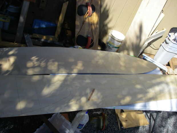 Las piezas breasthook son 3 pies de largo. La corte comienza a 1.5 pies de la punta. En los 2 pies la "pierna" de la pieza se trata de 4" de ancho. En el punto 2.5 pies la pierna es 2.5" de ancho.