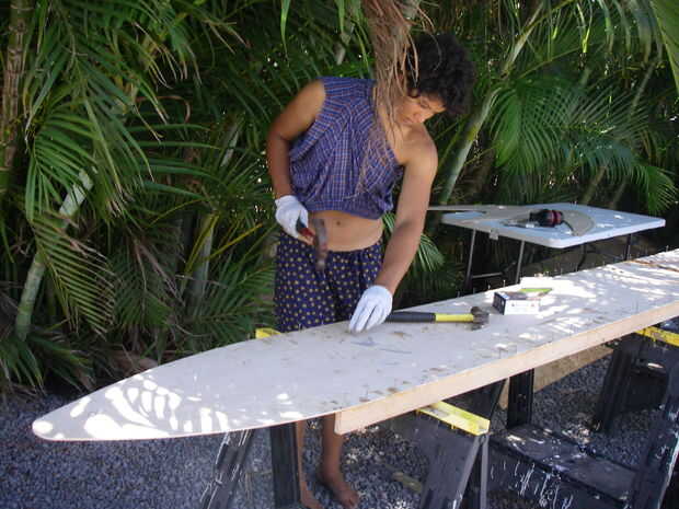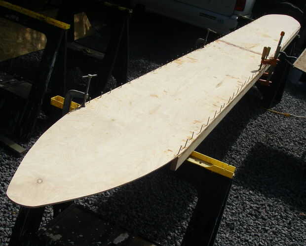 Repita con la segunda mitad de la cubierta. Epoxy y lleno a tope las dos mitades para arriba. Trate de hacerlas rectas. Tratar de hacer los bordes rectos.