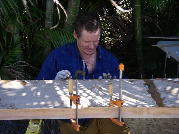 No tengo suficientes abrazaderas, por lo que lo mantienen en su lugar con clavos temporales.