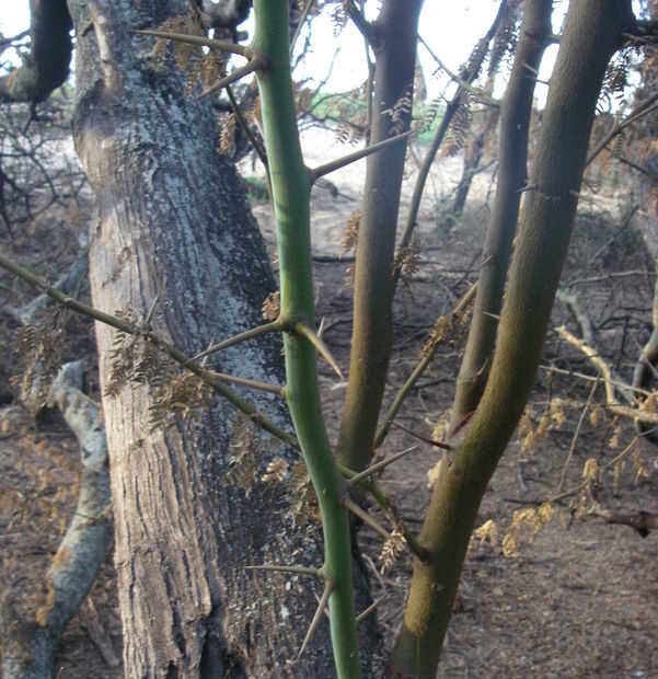 La mayoría de los palillos rectos cortamos tenían espinas más pequeñas que esto. Algunos tenían ninguno en absoluto. Los que crecen en la oscuridad parecían tener menos espinas que los que crecían en lugares soleados.