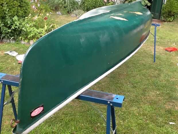 Estaba poniendo capas y capas de resina sólo sobre las manchas blancas. Donde la resina tocó el color original verde salió tan brillante como una canoa nueva. Esto fue un golpe de suerte, pero una casualidad increíble.