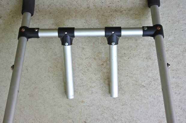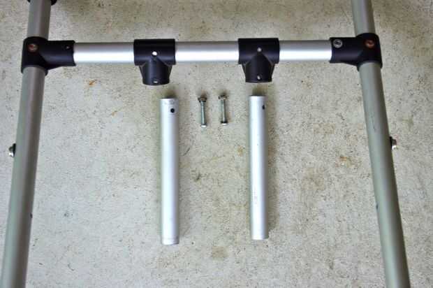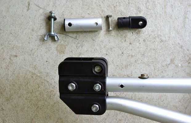 Ahora deslice el extremo de las barras frente a nuestra cama de carrito nuevo (el elemento de la manija) y fíjela con el hardware inicial de la silla de paseo.