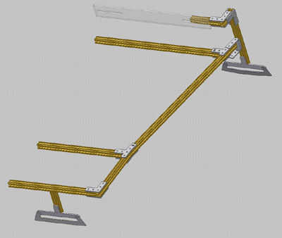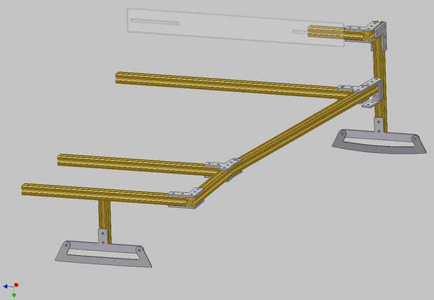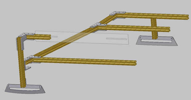 Para utilizar conectores de aluminio jet abrasivos mecanizado diseño y extrusión de barras de aluminio. Las hojas fueron también jet trabajados a máquina de acero inoxidable y afilado a un ángulo de 90 grados con la mano. La flexión es policarbonato. Podía lograr lo mismo con el acero del desecho de un marco de la cama soldado con autógena juntos.