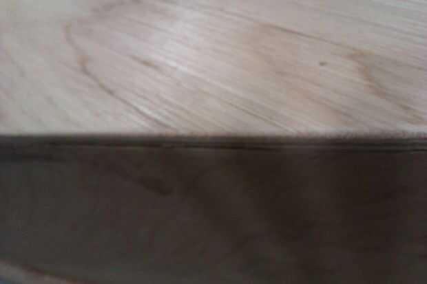 Ahora que darle la vuelta excedente y recorte el exceso. He probado usando un corte al ras vio accesorio, en mi herramienta multiusos, pero que era muy lento así que intenté un manual cortado al ras la sierra que no he podido conseguir ir paralelo para mí. Entonces noté la madera fue de 6mm, así que recurrí a mi router para que os adjunto un 1/4 de pulgada poco roundover (= 6.4 mm) que funcionó realmente muy bien - hasta que el epóxico fusión en el cojinete de la guía y quema, crear un pequeño caos. Un poco roundover de 10mm entonces se recurrió a y los bordes fueron limpiados con un plano y arena suave.