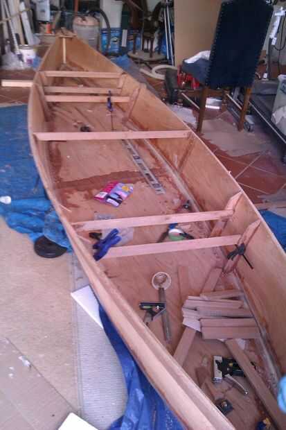 Es posible que observe que substituyó el resto de ese marco temporal centro con un travesaño (yugo o frustre). Se trata de agrega integridad estructural y hace un punto útil para llevar la canoa boca abajo sobre sus hombros. Si yo había estado pensando en el futuro mi marco temporal habría tenido un elemento permanente.
