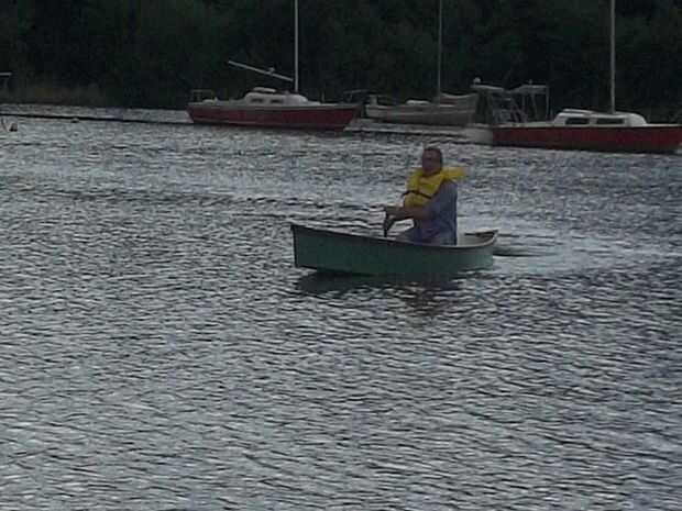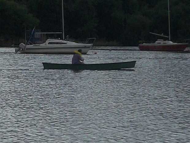 Unos días después de estas fotos fueron tomadas lo tomé hacia fuera por mí mientras que había un poco de viento sobre y encontró a obtener a ningún tipo de control que tenía que sentarse en el centro sobre un cojín y utilizar la paleta doble, aunque eso lo de doble paleta es probablemente más un producto de mi falta de práctica de paddle sola. El viento era racheado en lugar de que ráfagas continuamente fuertes e individuales woud coger uno de los extremos de la canoa a pivotar sobre o weathervaning ti un poco. Un skeg y foregripe * como en canoa rápida de Mik Storer podría mejorar el seguimiento, pero a costa de afectar a manoeverability y en la remoción de agua. Ningún barco es perfecto - incluso los mejores de ellos son sólo una acumulación de compromisos hasta algo conveniente hace estallar hacia fuera.