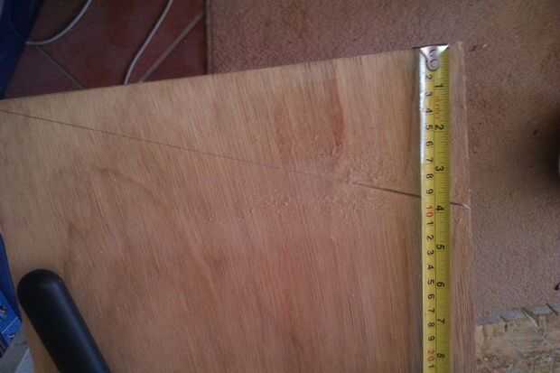 No mucho a-cortar la hoja de madera contrachapada para los lados en mitad, pila ellos uno encima del otro corte por la mitad otra vez.