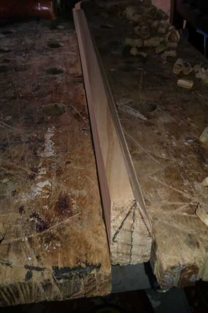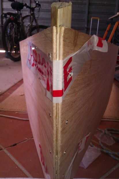 Costura o conducto cinta adhesiva los extremos juntos en la preparación de fileteado y de fibra de vidrio es aceptable pero opté por el método de la madre, el ángulo de medición con mi medidor cónico para ser tallado con mi avión. Con una sierra de mesa para hacer tales cosas pueden marcar en cerca de 40 grados (o un par de pases a 20 grados). Mis tallos sacó un poco superior e inferior inicialmente y estaban pegados con tornillos de acero inoxidable y titebond3 (comprar un bulto de Aldi).