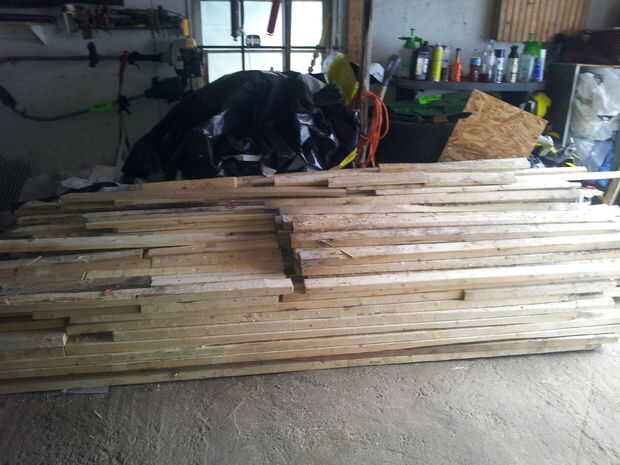 La pila que adquirí fueron construidos con una variedad de tamaños. 1 x 3", 2" x 3", 2" x 6" y 2 x 4" en longitudes de hasta 6-8 pies. Más que suficiente para mis necesidades. También acabé con unos trozos de madera contrachapada OSD y algunas piezas de buen tamaño de poli láminas sería perfectos para hacer un barco de la piel. Lo mejor de todo, acabé con más de 200 placas de la reparación que, después de averiguar cómo eliminar sin dañar, me dejó con un montón de buen hardware para construcción.